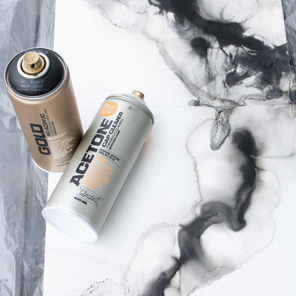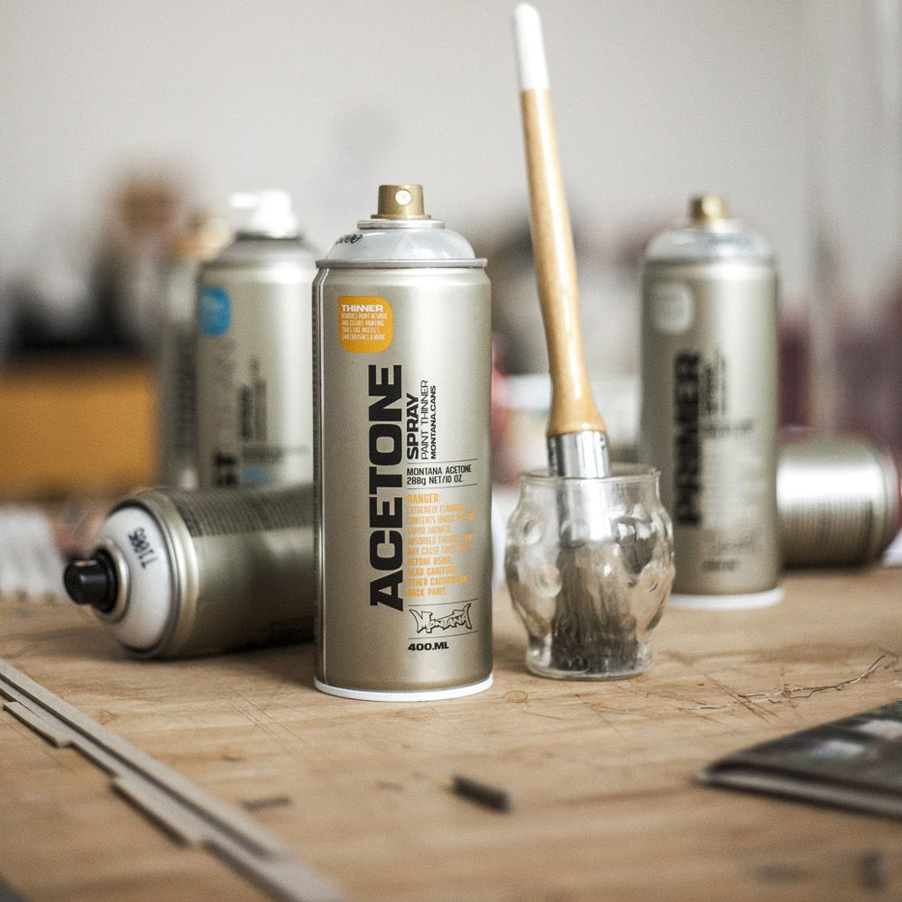 • Montana ACETONE spray also known as CAP CLEANER is a universal thinner and cleaning agent that is transparent in color;