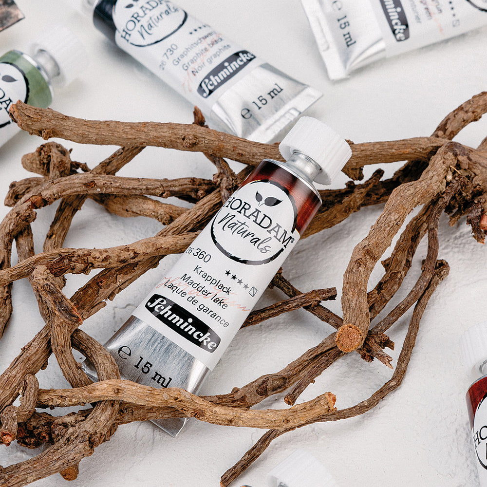 The outstanding feature of HORADAM Naturals is the use of exclusively natural earth and plant based pigments and extracts. The genuine juice of the indigofera plant or the resin of the dragon's blood tree enables plant-based colours. The use of exceptional earth pigments leads to precious colours like Lalvarit violet or Caucasus earth. All pigments used were carefully selected. The lightfastness of each pigment corresponds to the natural characteristics of the pigments.