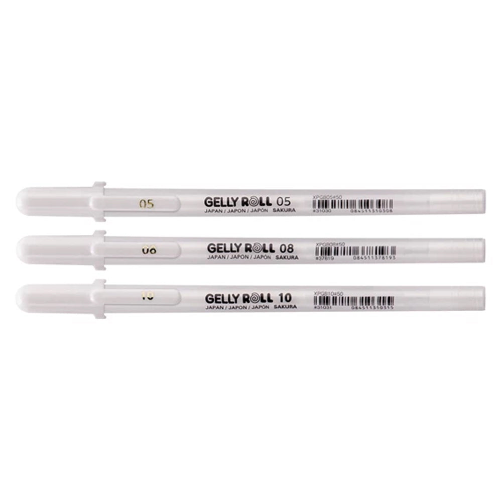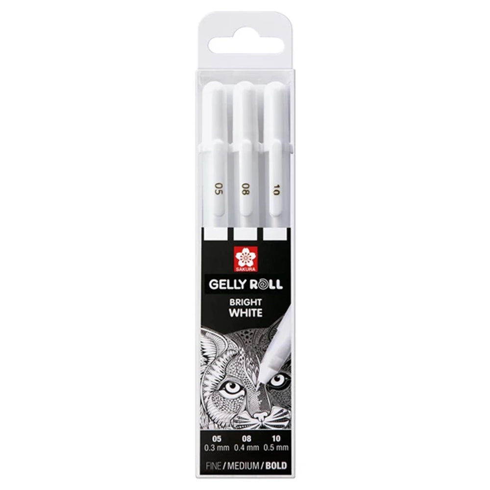 Sakura Gelly Roll baltų gelinių tušinukų rinkinys, 3 tušinukai