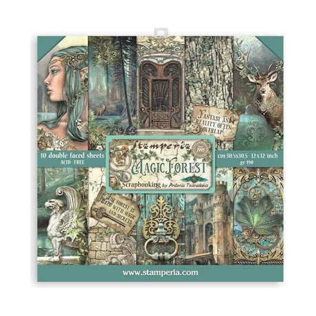 Stamperia dvipusio skrebinimo (dekoravimo) popieriaus rinkinys - Magiškas miškas, 10 vnt./pak.