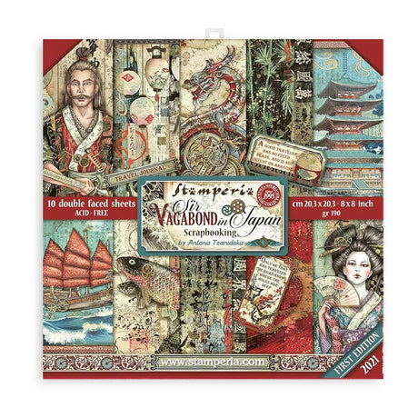 Stamperia dvipusio skrebinimo (dekoravimo) popieriaus rinkinys - Bastūnas Japonijoje, 10 vnt./pak.