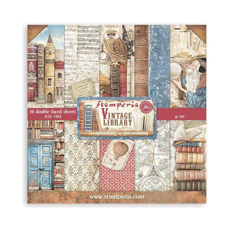 Stamperia dvipusio skrebinimo (dekoravimo) popieriaus rinkinys - Vintažinė biblioteka, 10 vnt./pak.