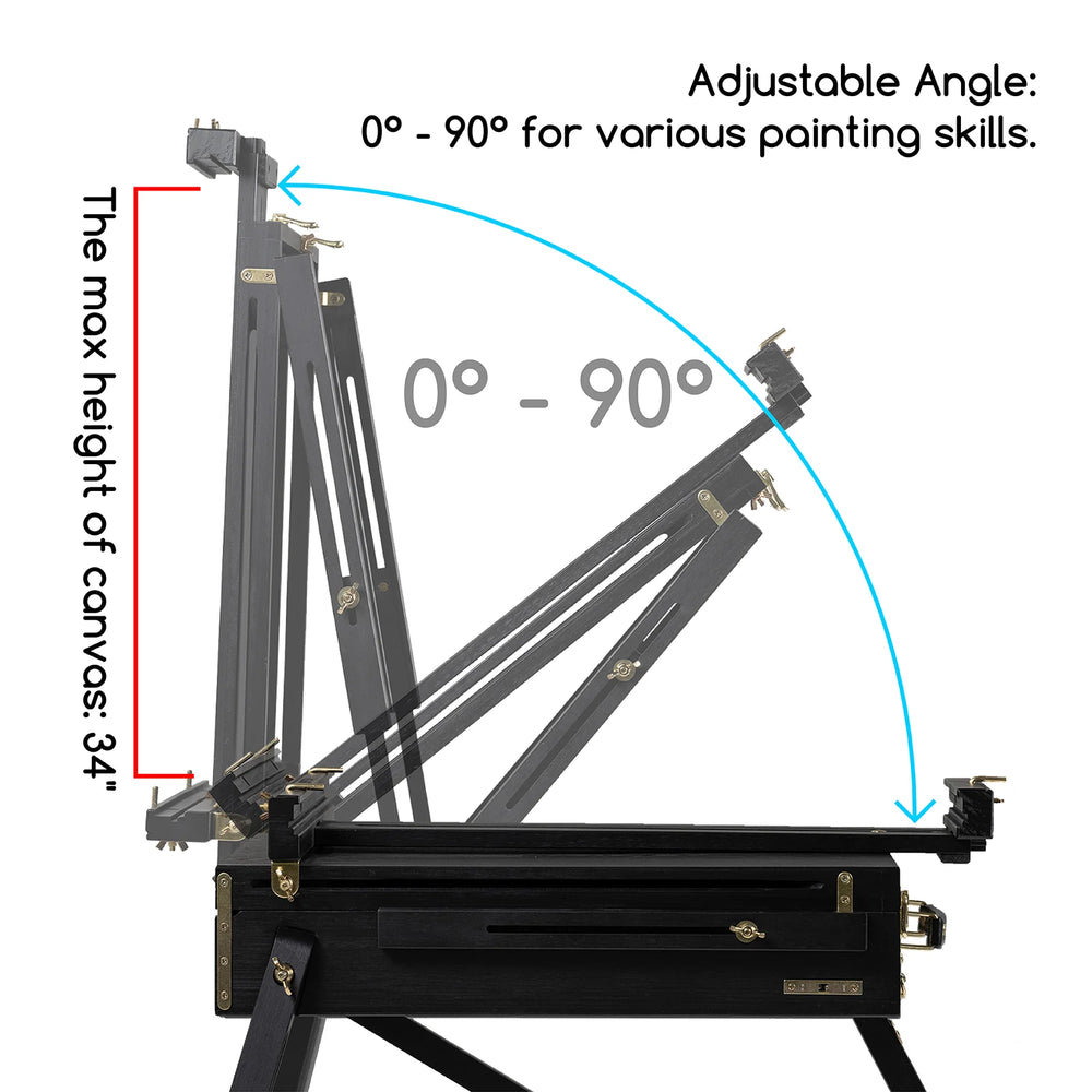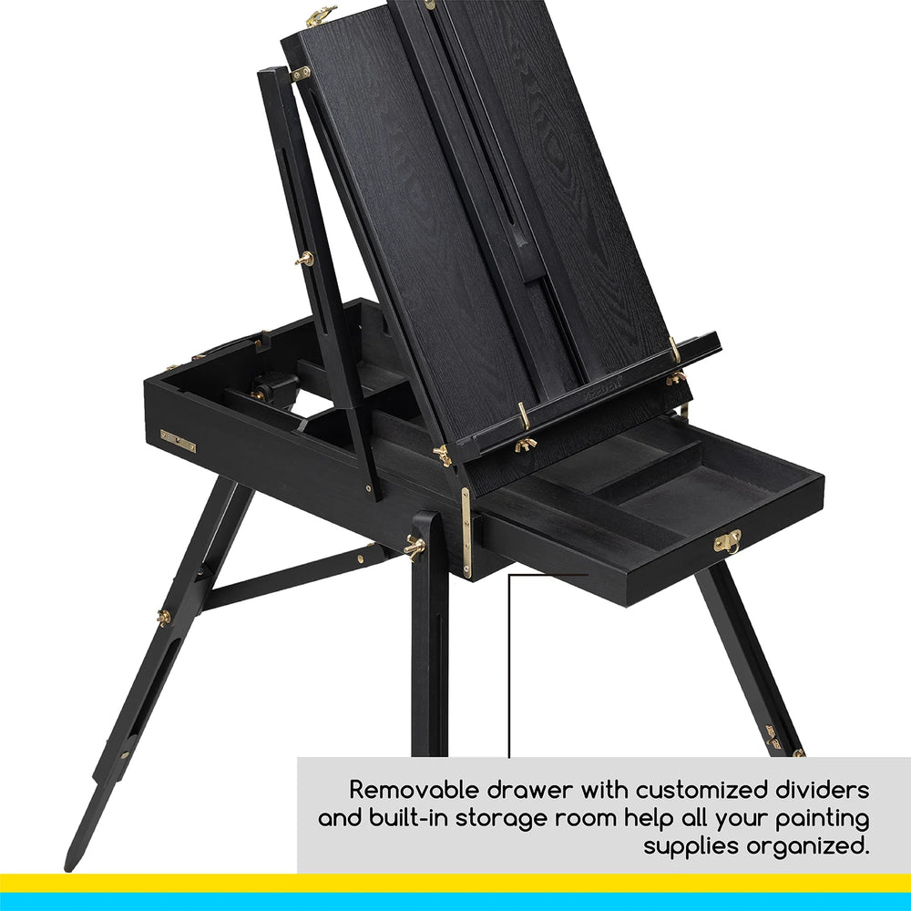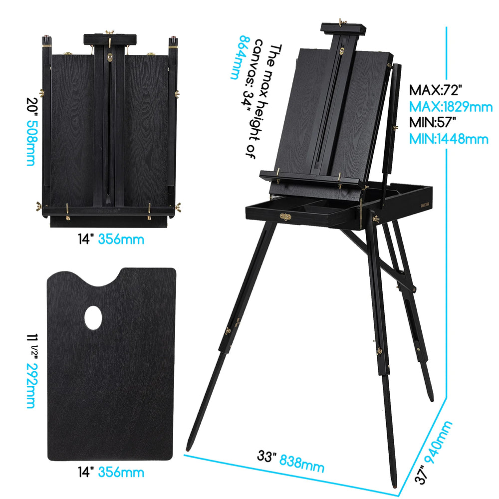 • Šis molbertas yra su stalčiumi, palete ir sulankstomomis kojomis, todėl jums bus suteikti visi būtini dalykai, kad galėtumėte pagerinti savo tapybos patirtį;