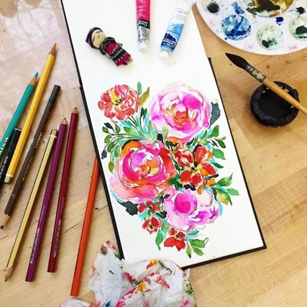 - Watercolor paper album, hardbound, cold press, 300 g/m2 thick;