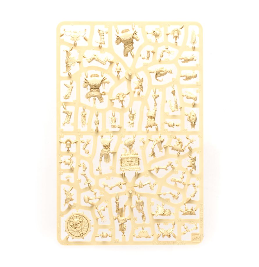 – 14 Bone-coloured plastic Tomb Kings players: 2x Tomb Kings Blitzers, 2x Tomb Kings Throwers, 4x Tomb Guardians, 6x Skeleton Linemen, plus coins, Re-roll markers, and extra balls