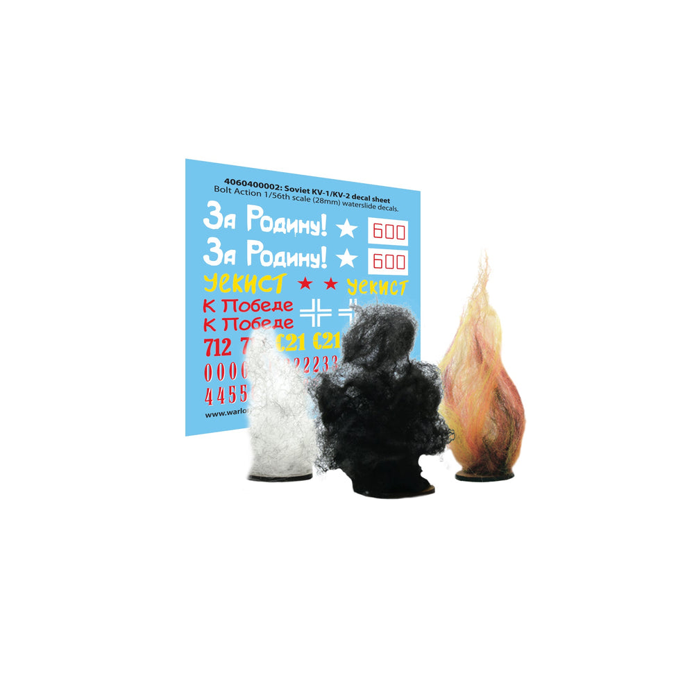- Box contains one plastic KV-1/2 Heavy Tank, a sprue of Soviet Infantry (6 men), decal sheet, and vehicle damage markers;